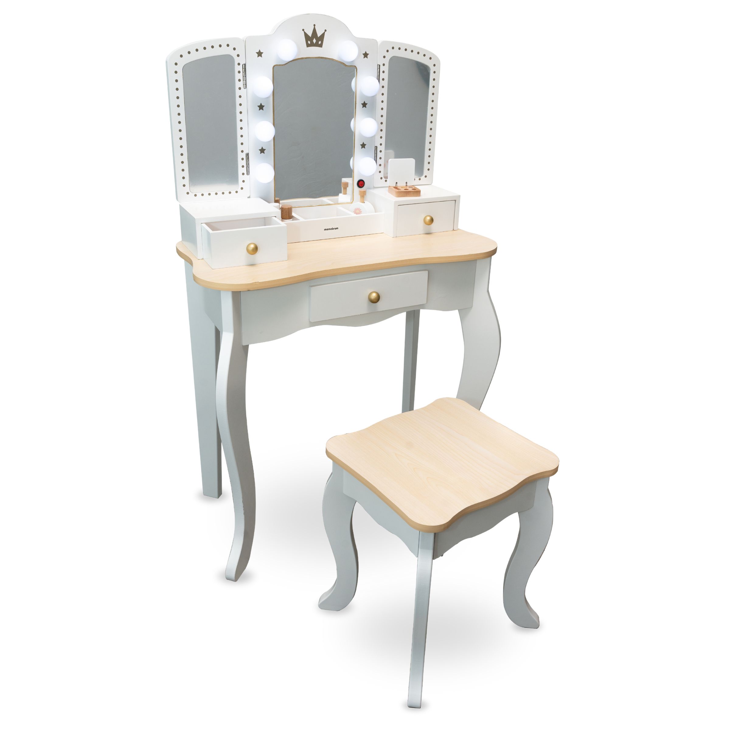 XXL-Holzfrisiertisch mit Hocker und LED-Beleuchtung für Kinder + Zubehör