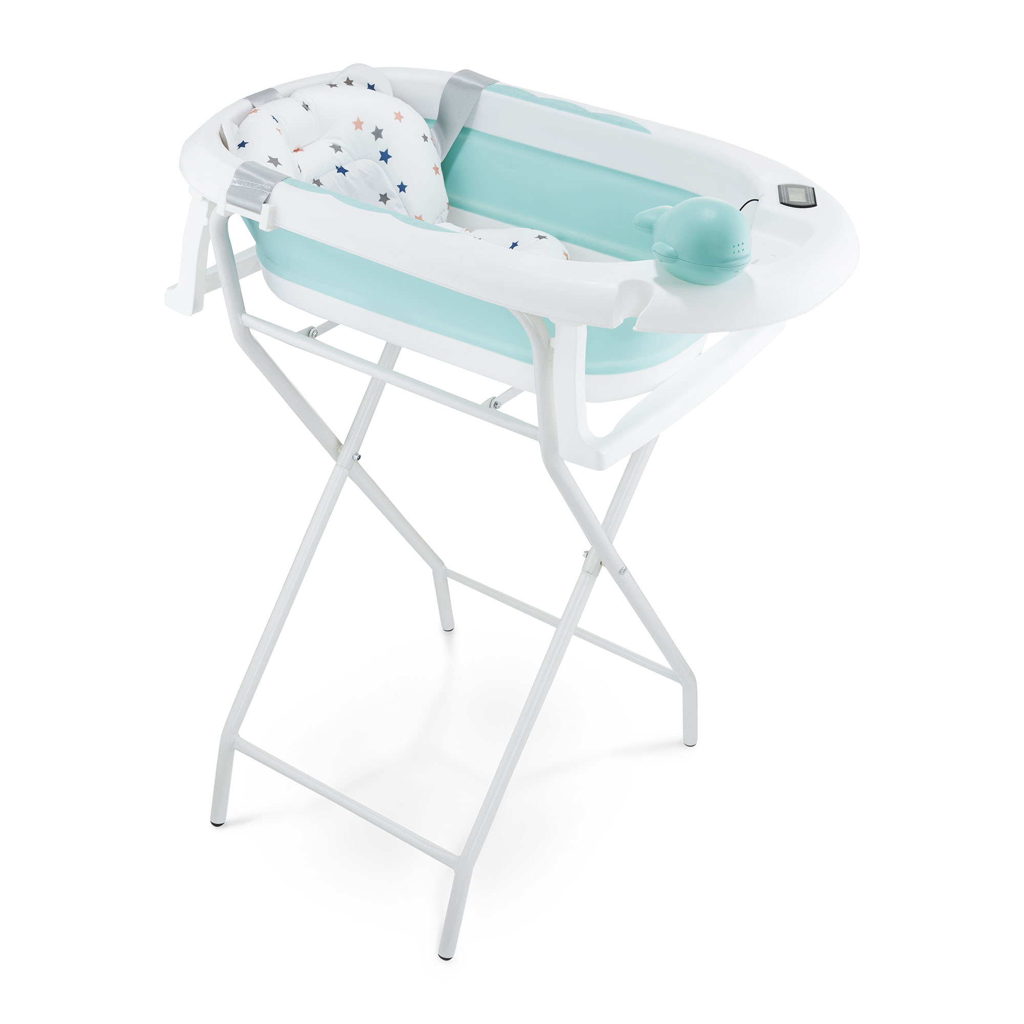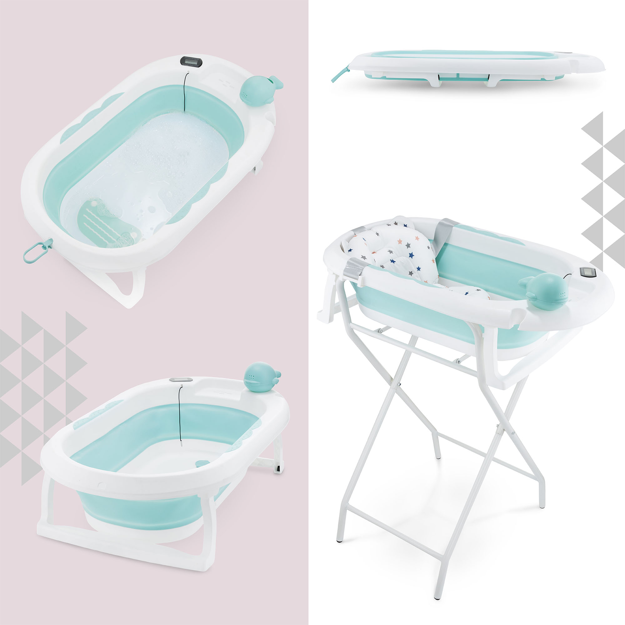Zusammenklappbare Babybadewanne mit Thermometer, Einsatz und Ständer - mintfarben