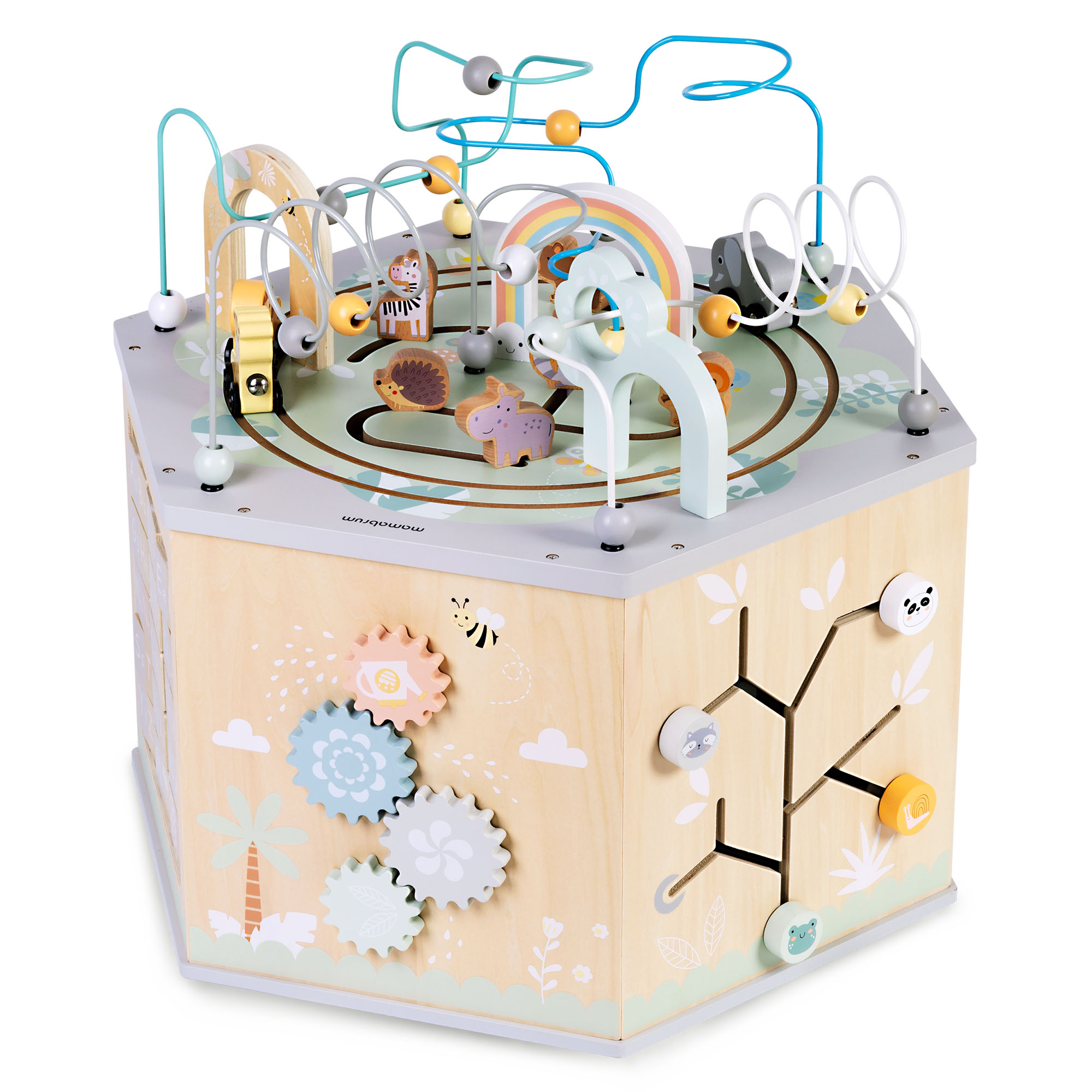 Schenken Sie Ihrem Kind ein Spielzeug, das es durch seine Vielfalt begeistert und stundenlang beschäftigt! Dieser große, multifunktionale Lernwürfel ist ein wahres Aktivitätszentrum , das die Entwicklung Ihres Kindes spielerisch unterstützt. Jede Seite hat eine andere Aufgabe – vom Verschieben von Perlen über das Zuordnen von Formen bis hin zum Drehen von Zahnrädern. Sanfte Farben, niedliche Tiere und freundliche Illustrationen machen den Würfel nicht nur zu einem Spielzeug, sondern auch zu einer dekorativen Ergänzung für jedes Kinderzimmer .