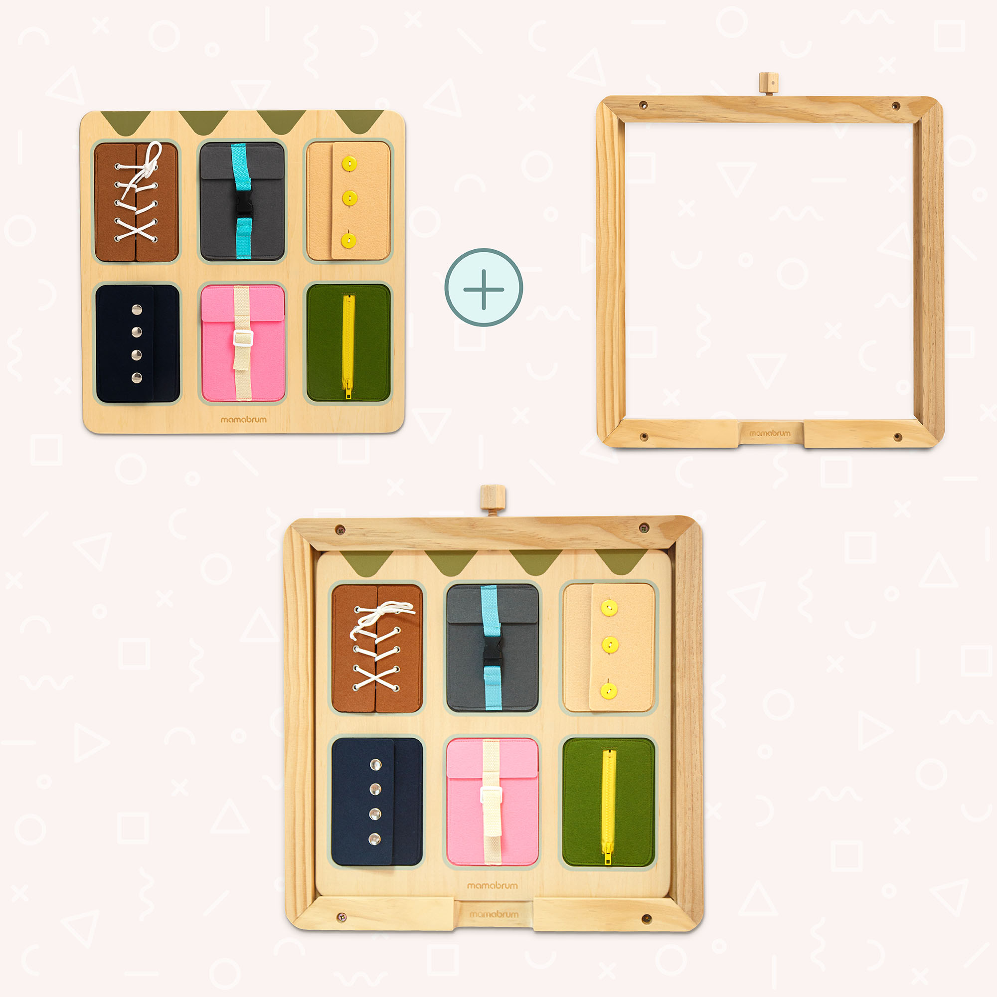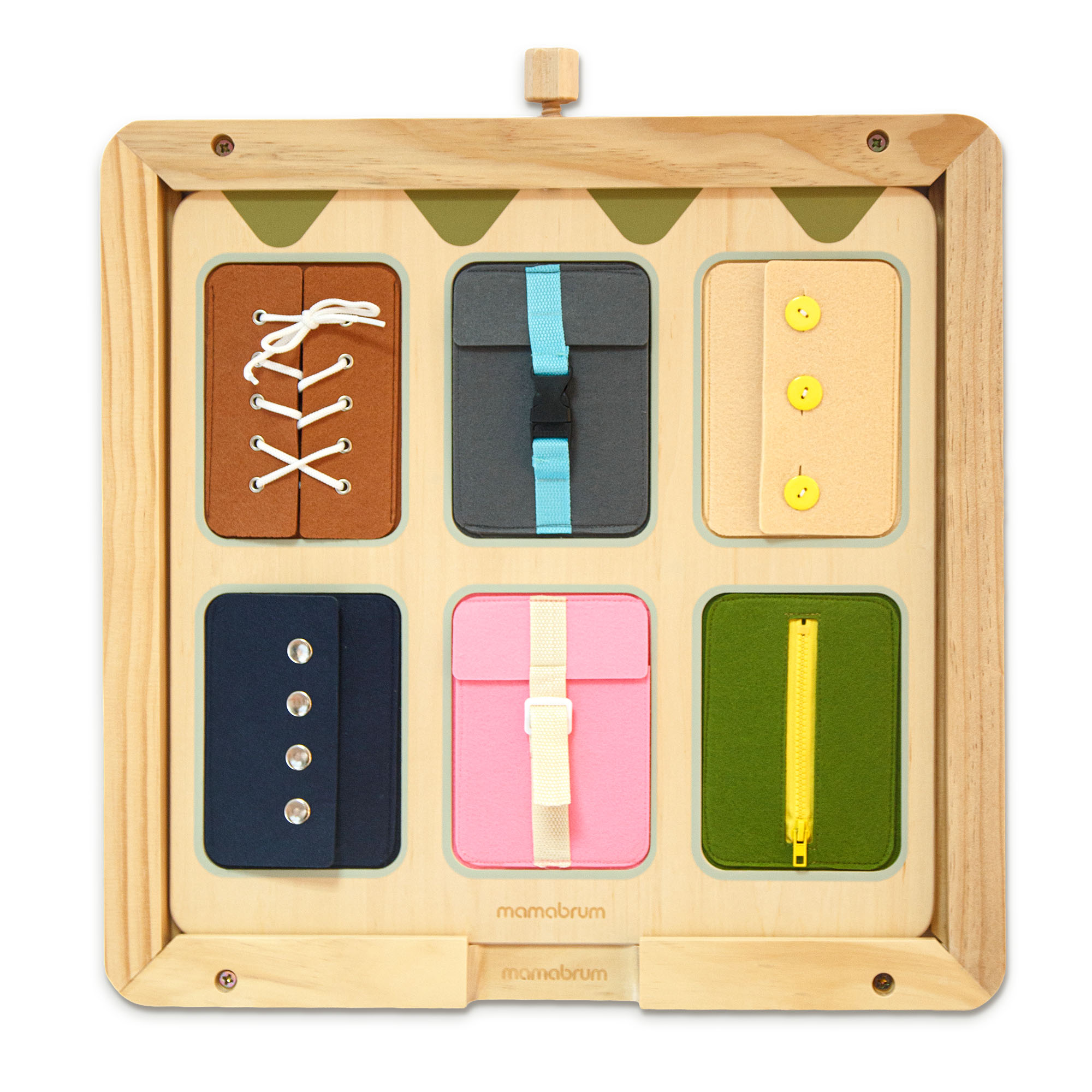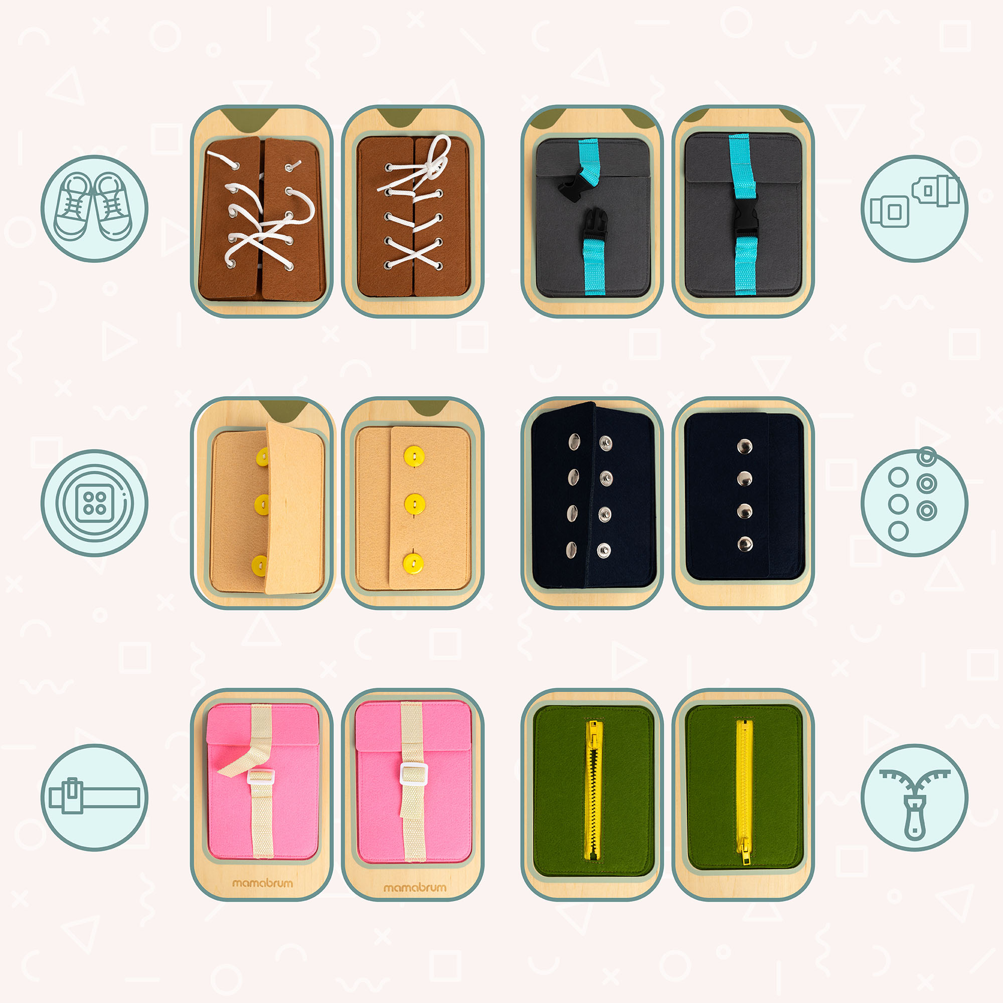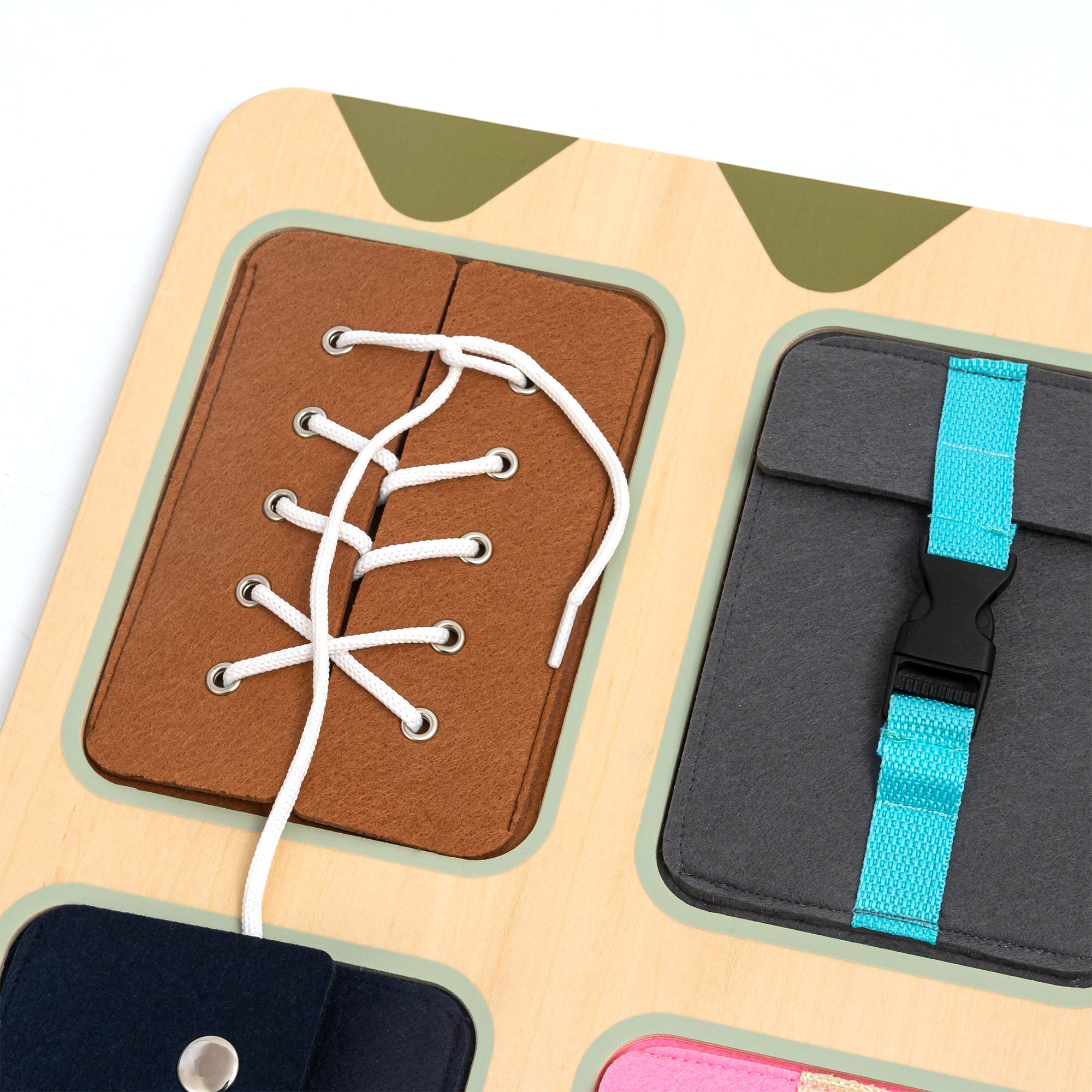 Jedes Mal, wenn ein Kind einen Verschluss öffnet, einen Reißverschluss schließt oder einen Schnürsenkel einfädelt, führt es präzise, sich wiederholende Bewegungen aus, die seine Feinmotorik und Hand-Augen-Koordination optimal entwickeln. Diese kleinen Fertigkeiten bilden die Grundlage für spätere Herausforderungen – vom Zeichnen und Schreiben bis hin zum selbstständigen Anziehen oder dem Umgang mit Besteck. Das Brett wird so nicht nur zum Spielen, sondern auch zu einer Werkstatt für Geschicklichkeit und Geduld , in der jede Bewegung das Kind seinem nächsten Erfolg näherbringt.