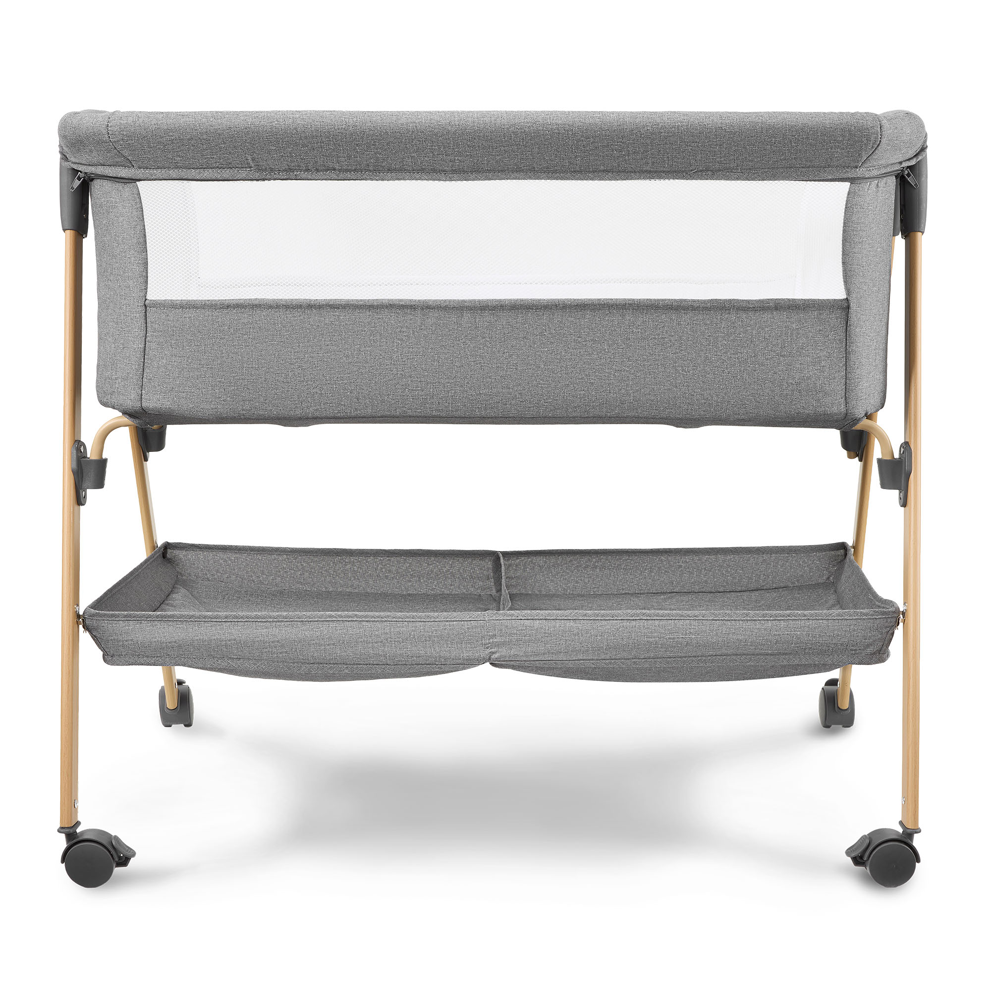 Babybett, freistehend, Reisebett, Wiege mit Matratze – grau