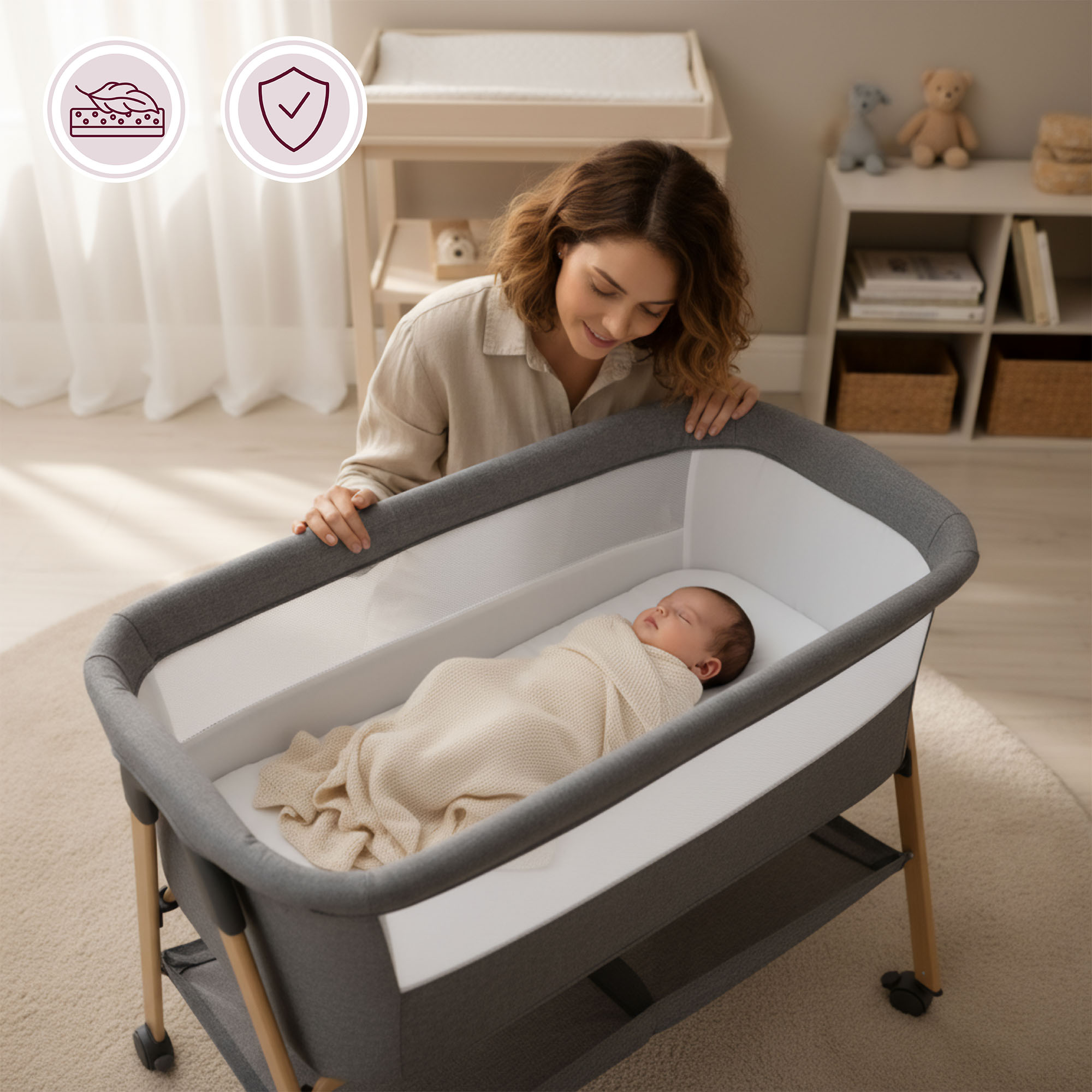Wichtig ist, dass nicht alle Babybetten zusätzlichen Stauraum bieten, und ein solcher Korb erhöht den Komfort im Alltag deutlich. Er ist eine praktische Ergänzung, die für Ordnung sorgt und die Pflege Ihres Babys noch einfacher macht.