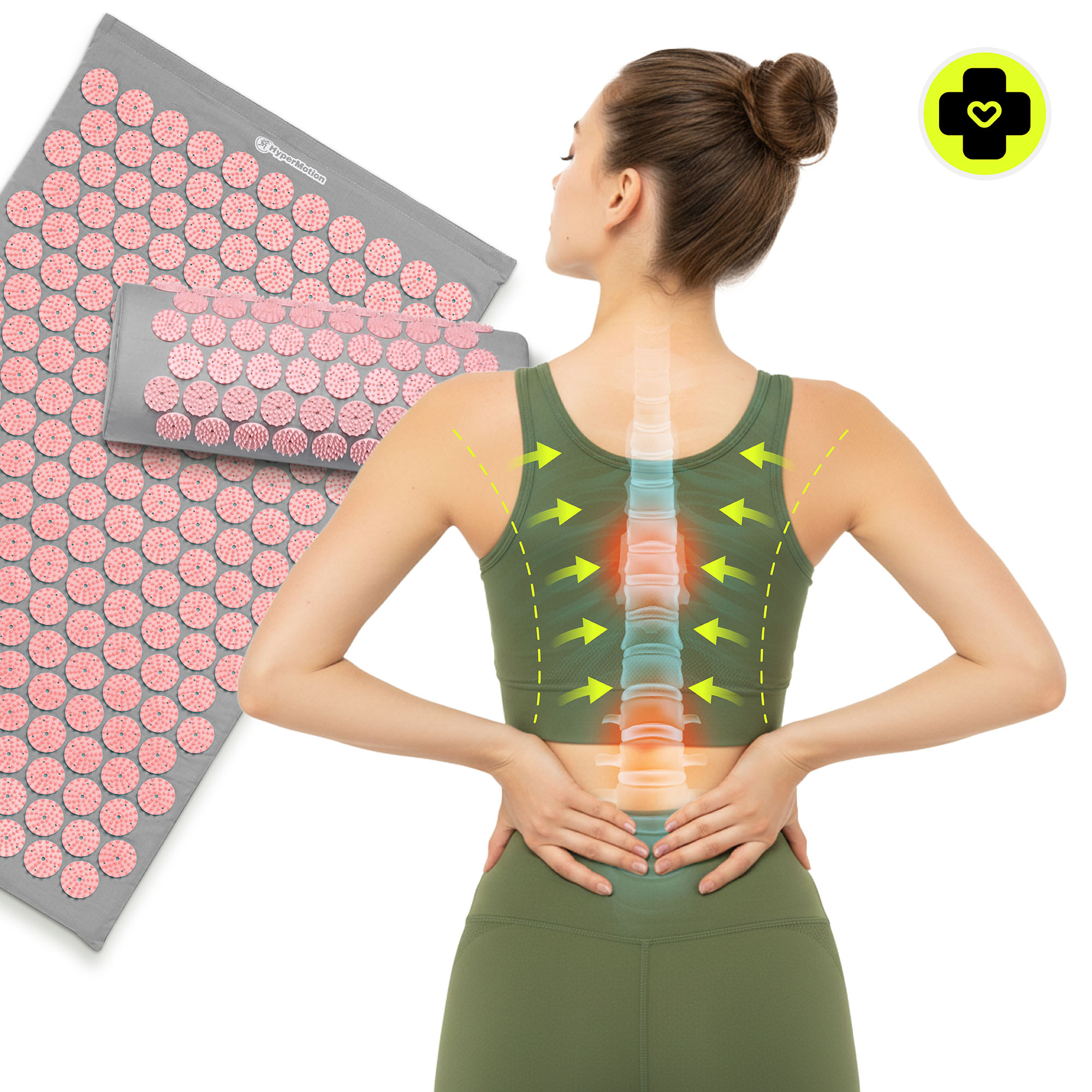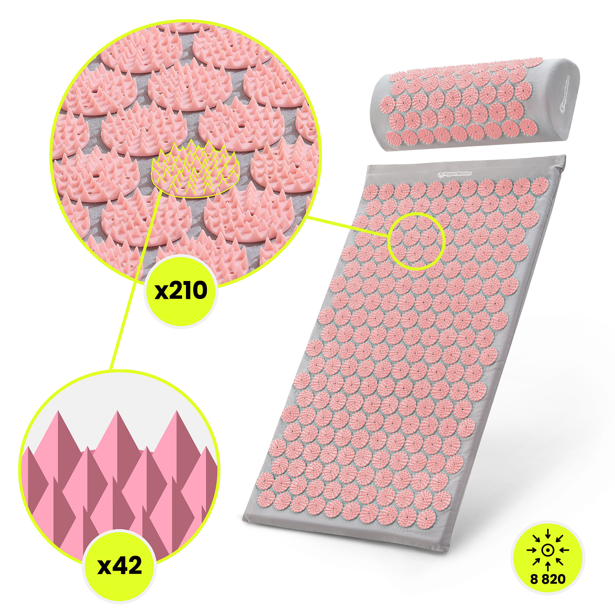 Akupressurmatte mit Kissen und Bezug – 72 cm, HyperMotion, grau und rosa