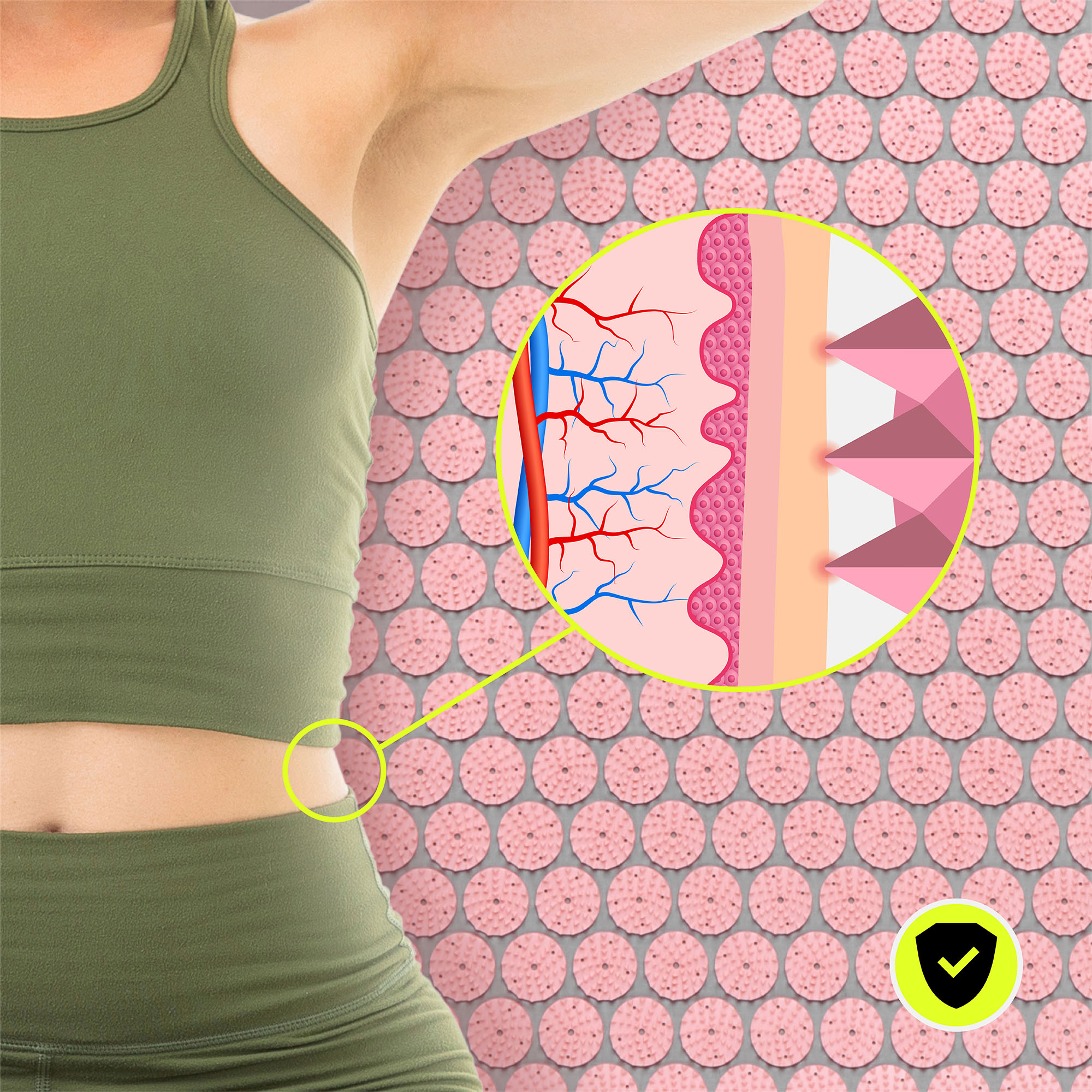 - 8.820 Druckpunkte – 210 Rosetten mit je 42 Spitzen sorgen für eine gleichmäßige und spürbare Wirkung auf der gesamten Oberfläche der Matte.